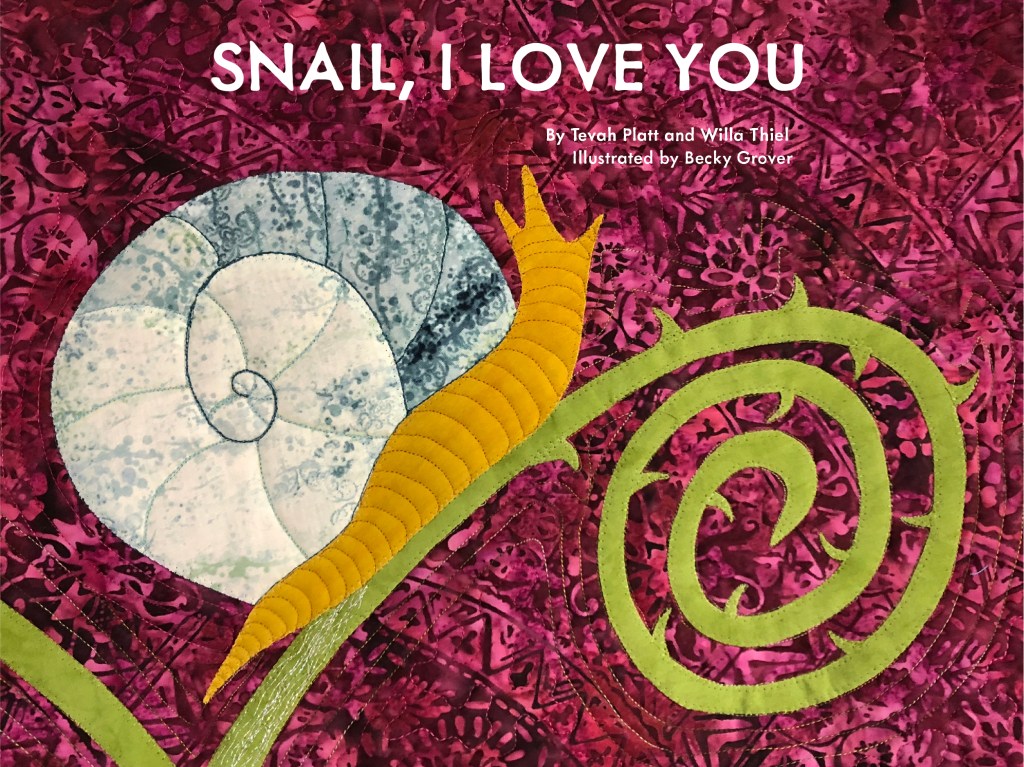I wrote a children’s book, Snail, I Love You, with my daughter, Willa. It was released in 2018 from Fifth Avenue Press, and it is brimming with love. It is also gorgeously illustrated by my neighbor, fabric artist Becky Grover. Thanks to some 200 supporters, it was 433% funded on Kickstarter.